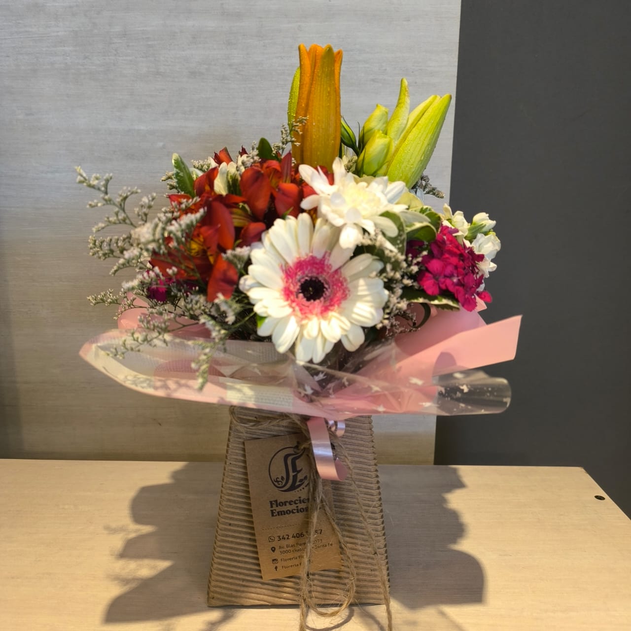 El color del arreglo es representativo. Por tratarse de productos naturales, la disponibilidad de las flores puede variar según la época del año. De ser necesario, se sustituirá por otra de igual o mayor calidad y precio.